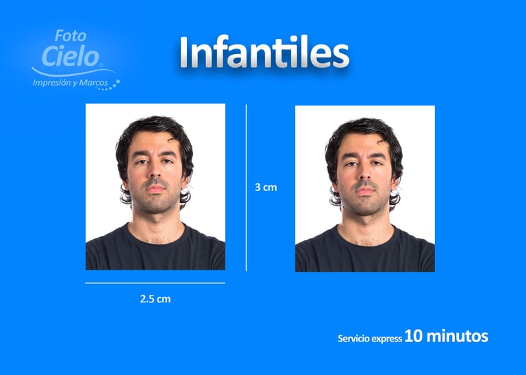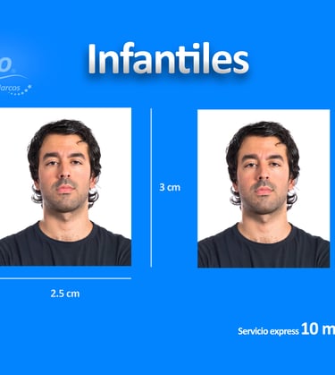 Paquete de 4 o 6 fotografias · Blanco y Negro · Papel Mate para Sello · Papel Adherible (opcional) · Retoque (opcional) · Plastificadas (opcional)